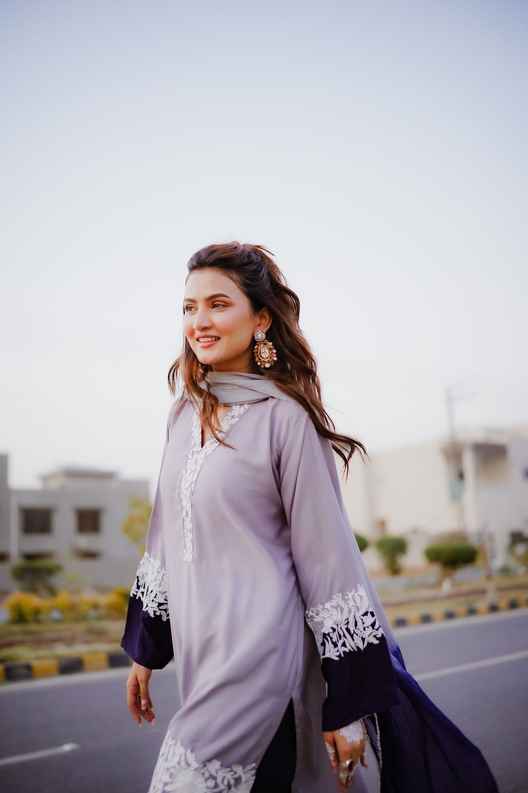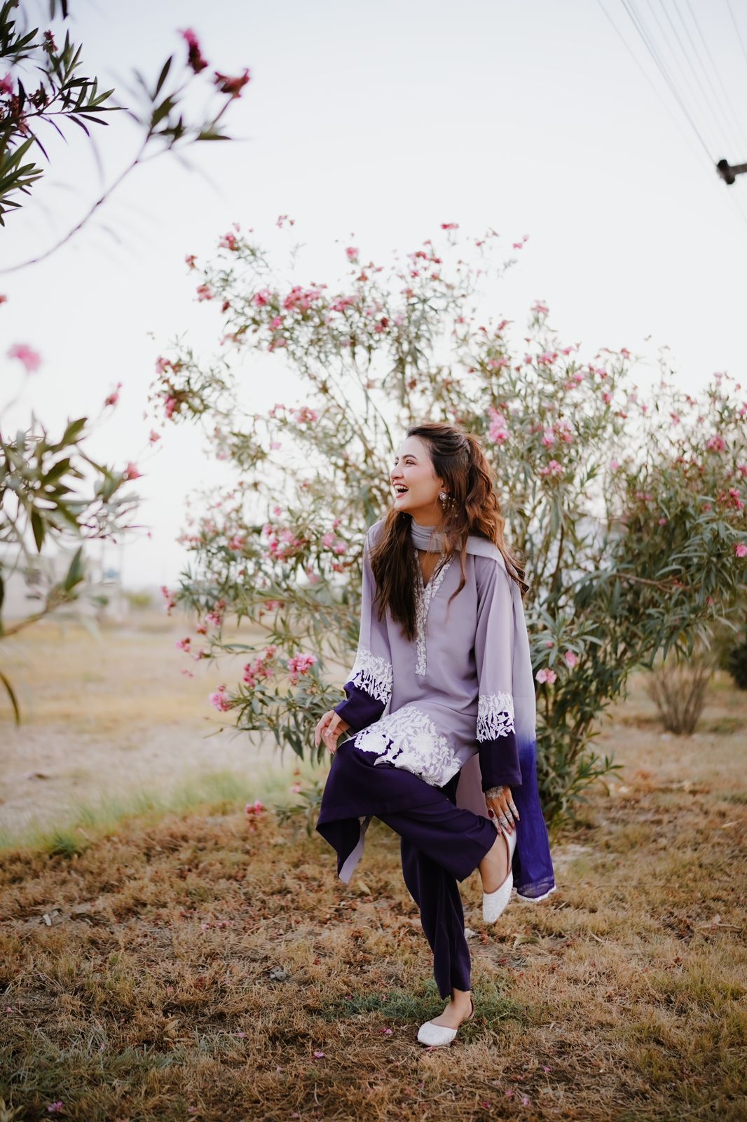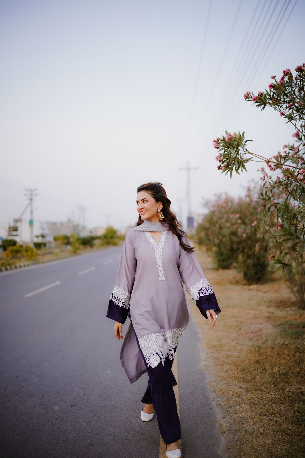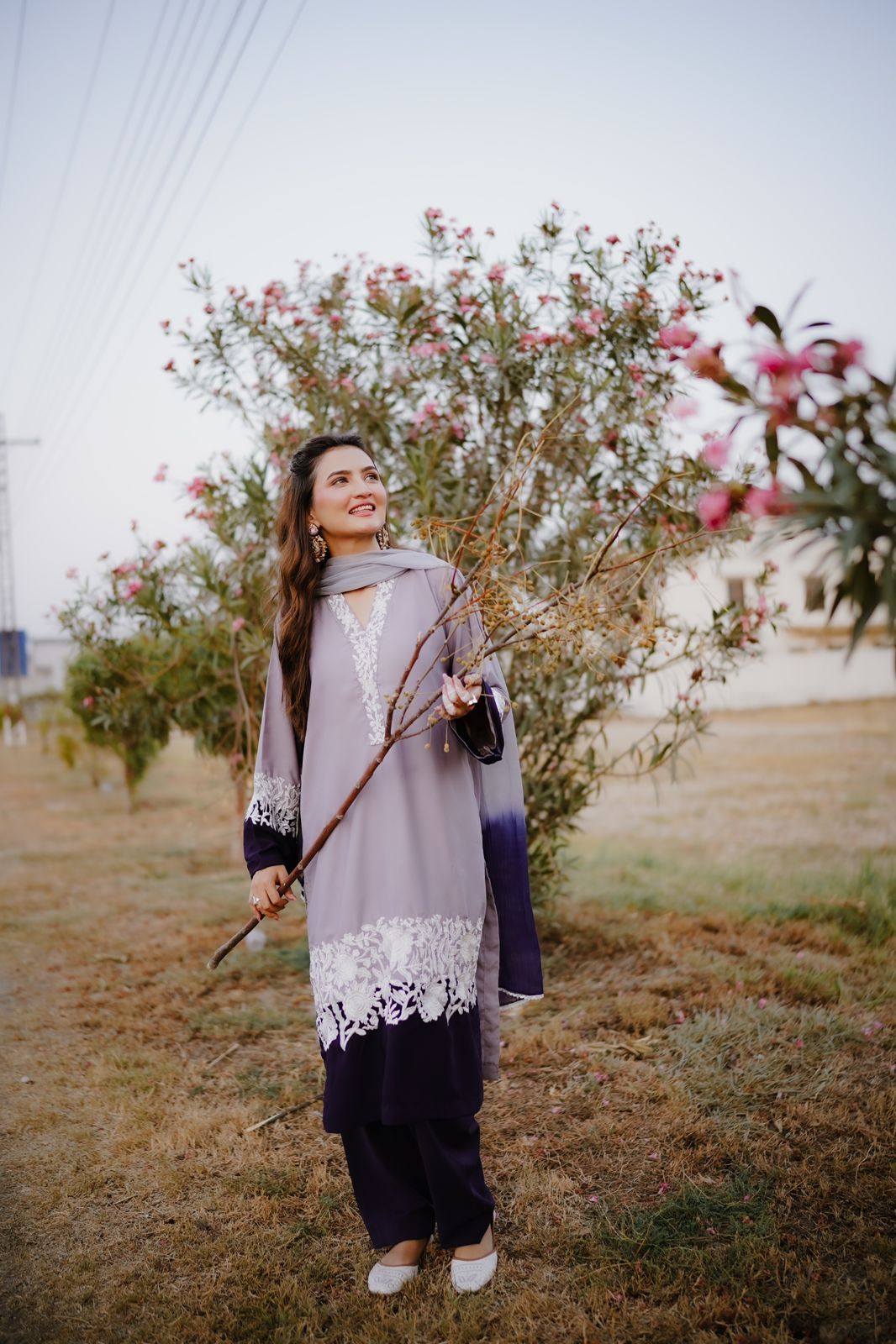 Georgette elegance meets tie-dye charm! Elevate your style with this shirt and trouser set, paired with a mesmerizing tie-dye dupatta and delicate four-sided lace detail. 💫